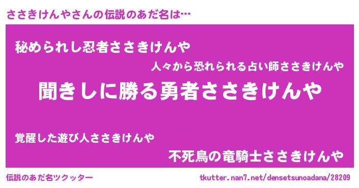 | 男性向けラノベタイトル風あだ名 | 『緋弾のササキケンヤ』 |
