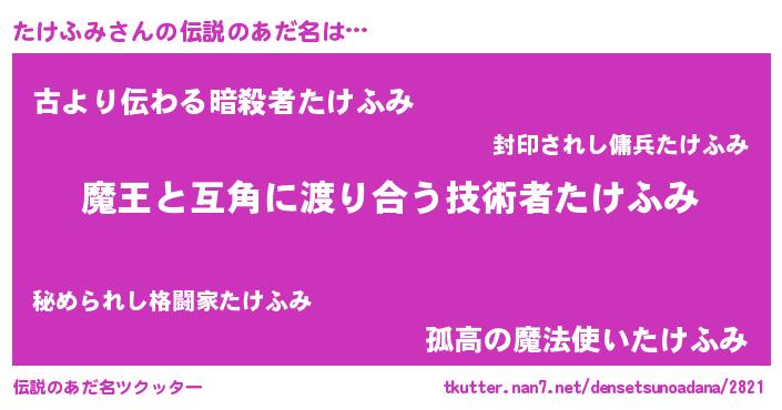 | 女子向けラノベタイトル風あだ名 | 『たけふみ恋絵巻』 |
