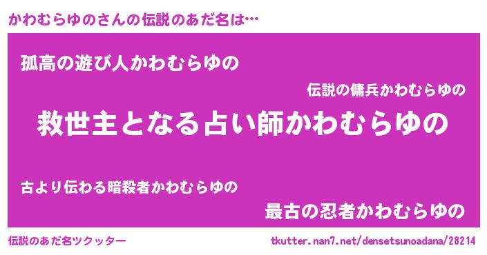 | ヒーロー風カッコイイあだ名 | 『仮面カワダー』『愛の使者かわむらゆの』 |
