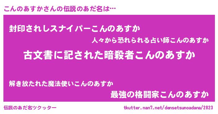| 意味不明あだ名 | 『自称こんのあすか』 |