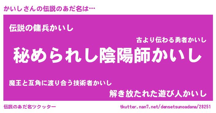 | ファンタジー風あだ名 | 『エターナルカイシー』『カイフェル』 |