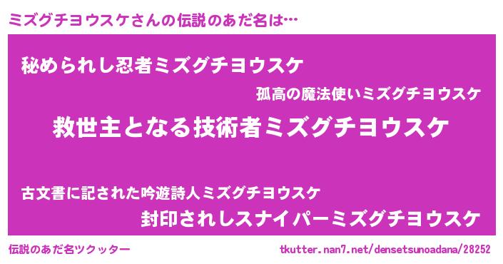 | ヒーロー風カッコイイあだ名 | 『天空の使者ミズグチヨウスケ』 |