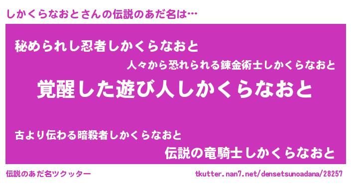 | 意味不明あだ名 | 『とにかく怪しいしかくらなおと』 |