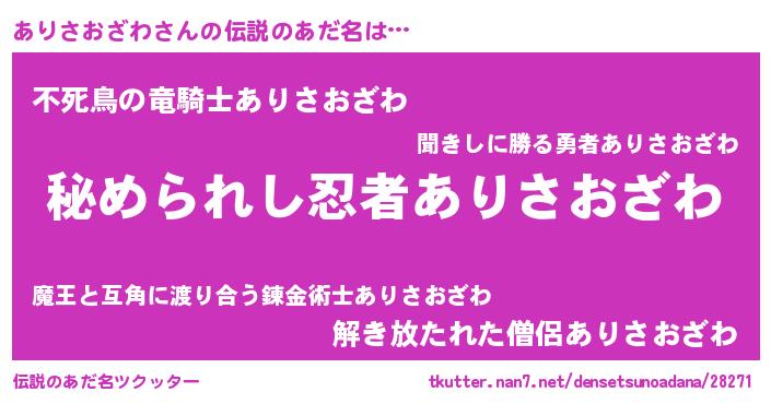 | ファンタジー風あだ名 | 『エターナルアリサオザワー』 |