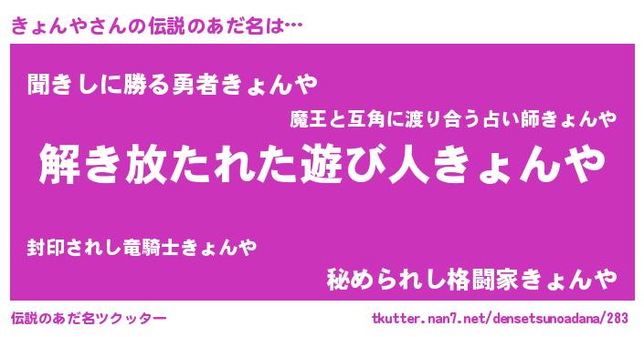 | ヘコむあだ名 | 『きょぷりん』『きょんや(震え声)』 |