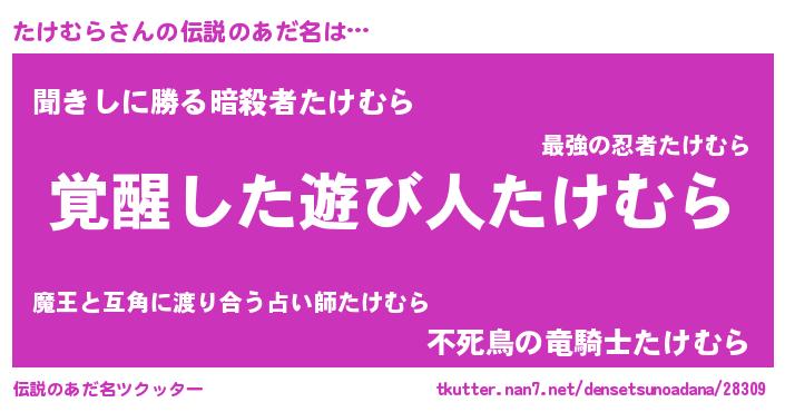 | 意味不明あだ名 | 『住所不定無職たけむら(77歳)』 |