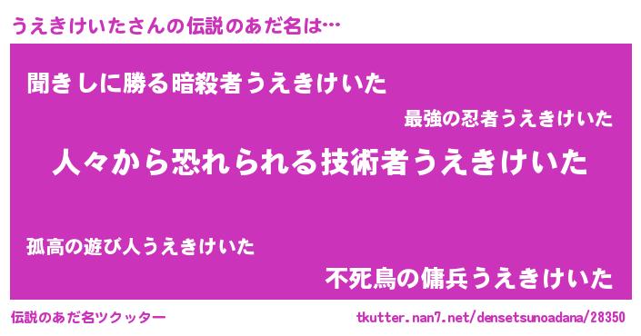 | 男性向けラノベタイトル風あだ名 | 『ウエキケイタスレイヤー』 |