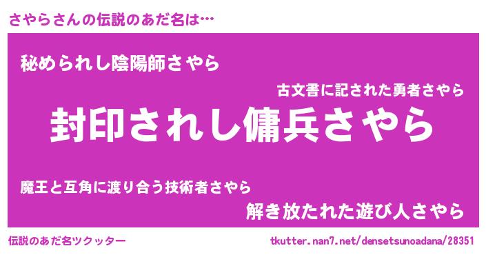 | ファンタジー風あだ名 | 『サヤフェル』『エターナルサヤラー』 |
