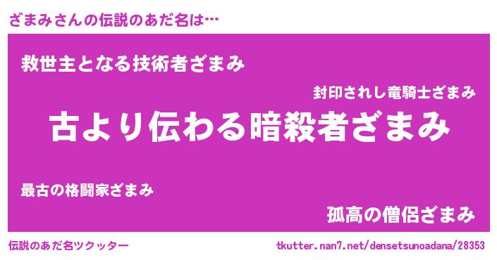 | ヘコむあだ名 | 『ざまみ(笑)』『ざまお』『ざまもー』 |