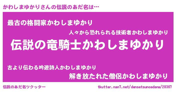 | 女子向けラノベタイトル風あだ名 | 『(仮)かわしまゆかりのやんごとなき事情』 |