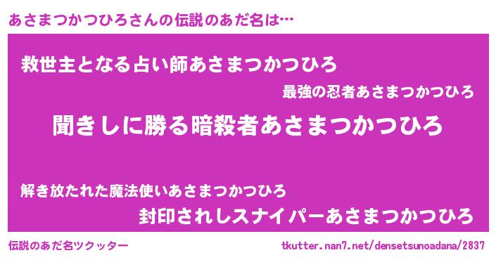 | 意味不明あだ名 | 『永久保存あさまつかつひろ』 |