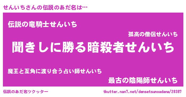 | 男性向けラノベタイトル風あだ名 | 『せんいちという概念が存在しない退屈な世界 』 |