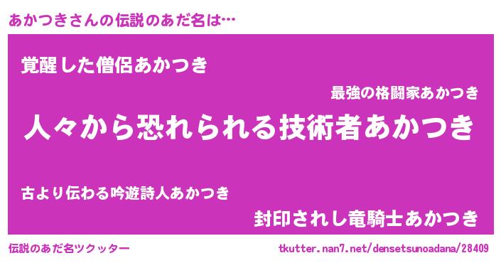 | ヒーロー風カッコイイあだ名 | 『正義の使者あかつき』『仮面アカダー』 |