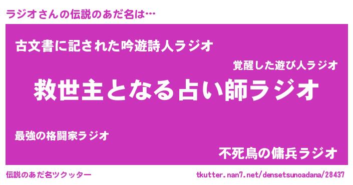 | ヒーロー風カッコイイあだ名 | 『慈愛の使者ラジオ』『ネオラジオ』 |