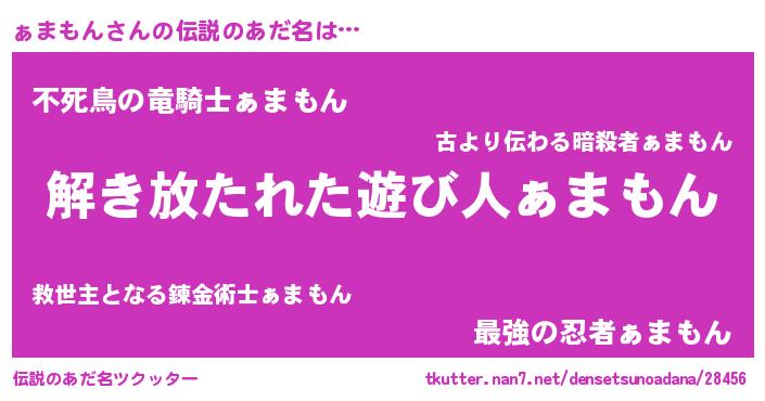 | ヒーロー風カッコイイあだ名 | 『サイバー戦士ァマモン』『銀牙騎士ァマ』 |