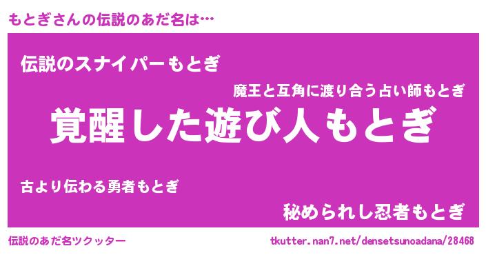 | 意味不明あだ名 | 『住所不定無職もとぎ(91歳)』『自称もとぎ』 |