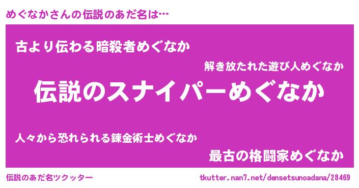 | 意味不明あだ名 | 『住所不定無職めぐなか(85歳)』 |