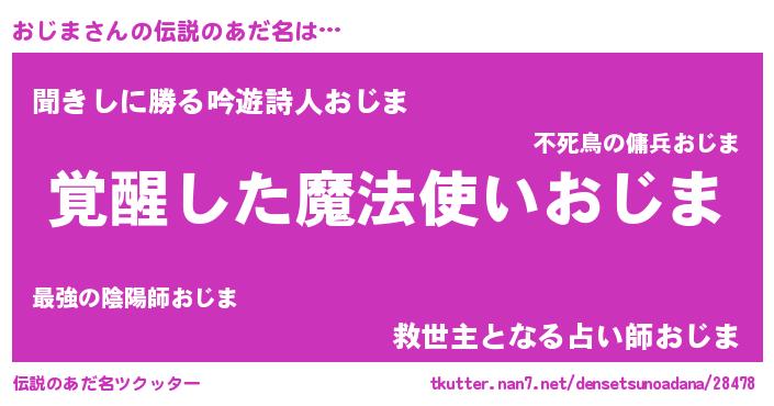 | 男性向けラノベタイトル風あだ名 | 『おじまに滅ぼされるだけの簡単なお仕事です』 |