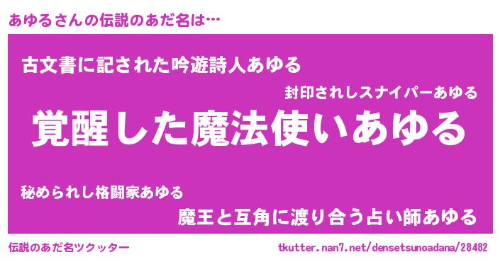 | ヒーロー風カッコイイあだ名 | 『炎刃騎士アユ』『仮面アユダー』 |