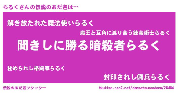| 意味不明あだ名 | 『永久保存らるく』『自称らるく』 |