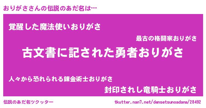 | 意味不明あだ名 | 『自称おりがさ』『永久保存おりがさ』 |