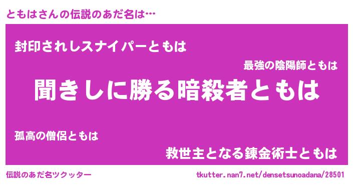 | 男性向けラノベタイトル風あだ名 | 『ともはという概念が存在しない退屈な世界 』 |