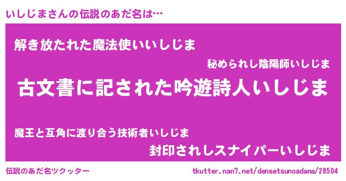 | 男性向けラノベタイトル風あだ名 | 『Re:いしじまから始める異世界生活』 |
