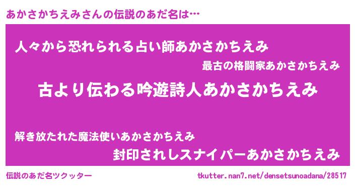 ヘコむあだ名 | 『あかさかちえみ(笑)』『あかもー』 |