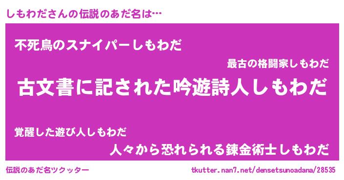 | ヒーロー風カッコイイあだ名 | 『ネオシモワダ』『スーパーシモワダ』 |