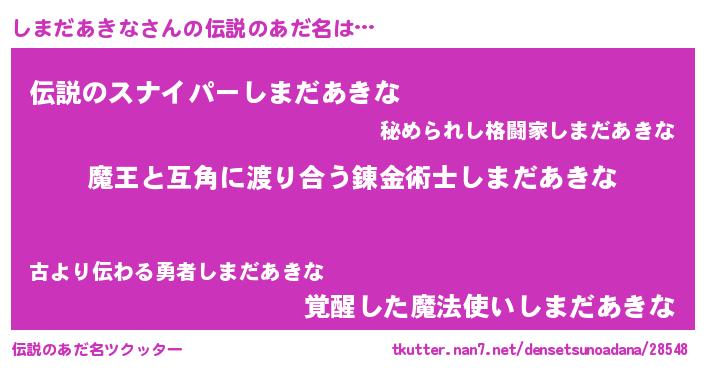 | 女子向けラノベタイトル風あだ名 | 『しまだあきな恋絵巻』 |