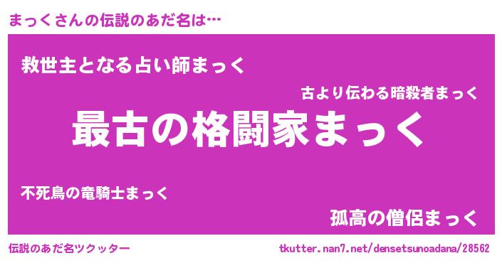 | 女子向けラノベタイトル風あだ名 | 『まっく伯爵の花嫁』『闇のまっく』 |