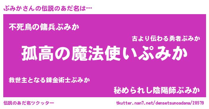 | 男性向けラノベタイトル風あだ名 | 『プミカスレイヤー』 |