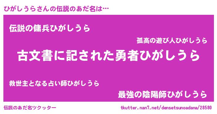 | ヒーロー風カッコイイあだ名 | 『仮面ヒガダー』『ネオヒガシウラ』 |