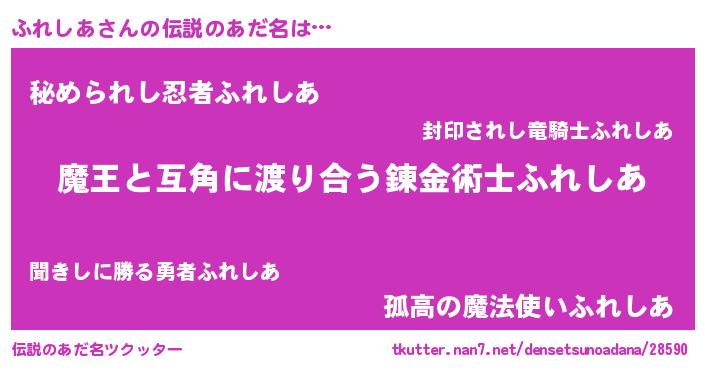 | 女子向けラノベタイトル風あだ名 | 『ふれしあ恋絵巻』 |