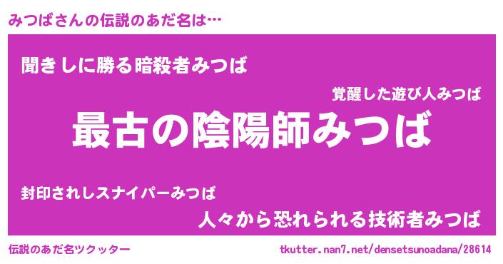| 意味不明あだ名 | 『みつばフォーエバー』『自称みつば』 |