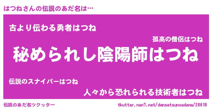 | 男性向けラノベタイトル風あだ名 | 『やはりはつねの青春ラブコメはまちがっている 』 |