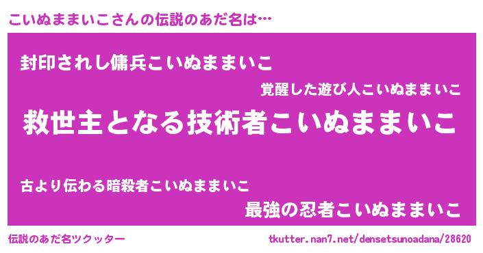| 男性向けラノベタイトル風あだ名 | 『こいぬままいこに滅ぼされるだけの簡単なお仕事です』 |