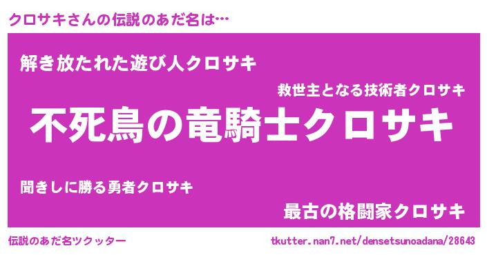 | ヒーロー風カッコイイあだ名 | 『仮面クロダー』『スーパークロサキ』 |