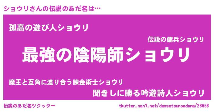 | ファンタジー風あだ名 | 『エターナルショウリー』『ゼショトゥ』 |