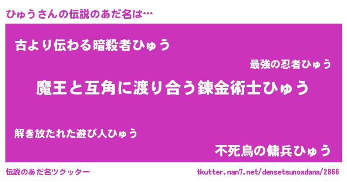 | ヒーロー風カッコイイあだ名 | 『愛の使者ひゅう』『ネオヒュウ』 |