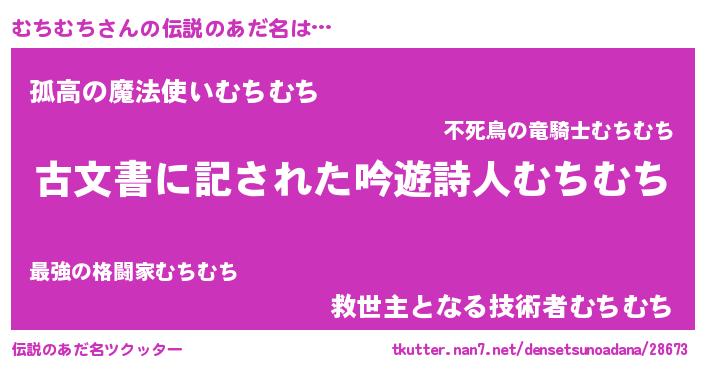 | ヒーロー風カッコイイあだ名 | 『ネオムチムチ』『魔戒騎士ムチ』 |