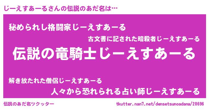 | 男性向けラノベタイトル風あだ名 | 『ジーエスアールスレイヤー』 |