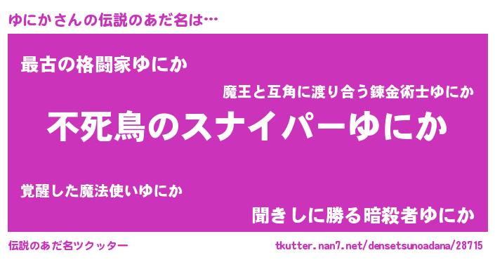 | 男性向けラノベタイトル風あだ名 | 『ゆにかの憂鬱』『魔法科高校のゆにか』 |