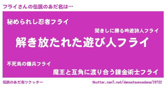 | ヒーロー風カッコイイあだ名 | 『魔戒騎士フラ』『ウルトラフライマン』 |