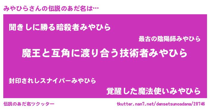 | ヒーロー風カッコイイあだ名 | 『愛の使者みやひら』『ネオミヤヒラ』 |