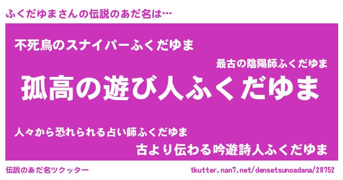 | 意味不明あだ名 | 『とにかく怪しいふくだゆま』 |