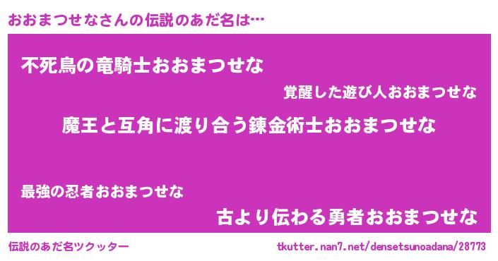 | ヒーロー風カッコイイあだ名 | 『慈愛の使者おおまつせな』 |