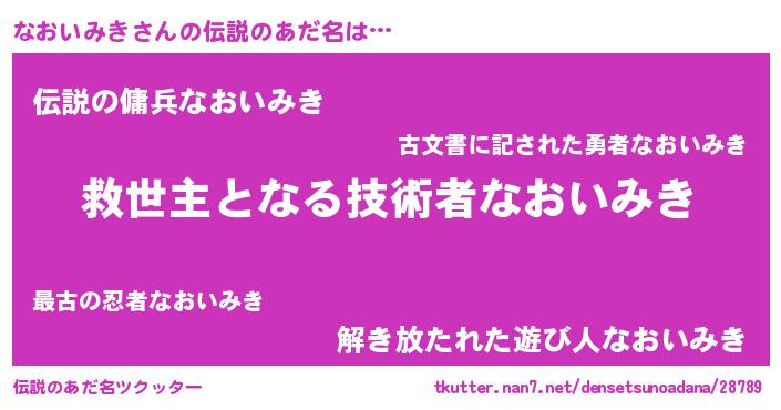 | 男性向けラノベタイトル風あだ名 | 『この素晴らしい世界になおいみきを!』 |