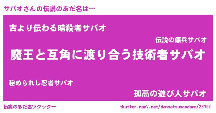 | ヒーロー風カッコイイあだ名 | 『愛の使者サバオ』『ネオサバオ』 |