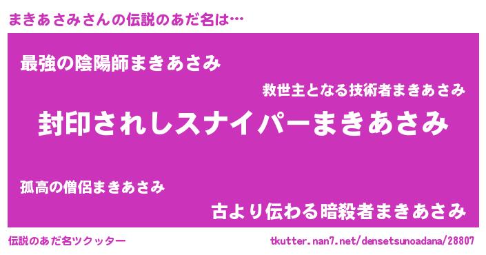 | 男性向けラノベタイトル風あだ名 | 『Re:まきあさみから始める異世界生活』 |